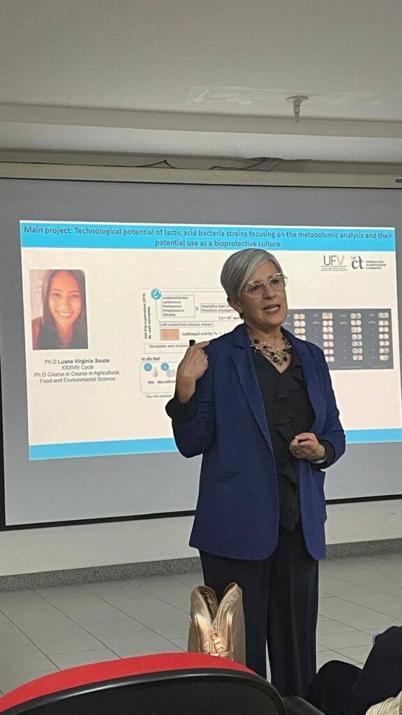 The PPGCTA had the honor of welcoming researchers Cinzia Randazzo and Cinzia Caggia from the University of Catania, Italy, for the lecture “UNICT Research in Action: Innovation Driving Scientific Discovery”, held on October 22, 2025, at the TAC Auditorium. Below, we share some moments from the event, which was attended by faculty members, students, and staff of the program, fostering an important space for scientific exchange, internationalization, and academic integration.